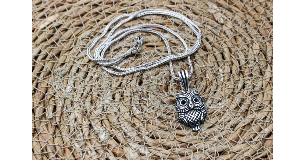 Handmade Sterling Silver Owl Pendant Necklace - Turkish Mens Jewelry