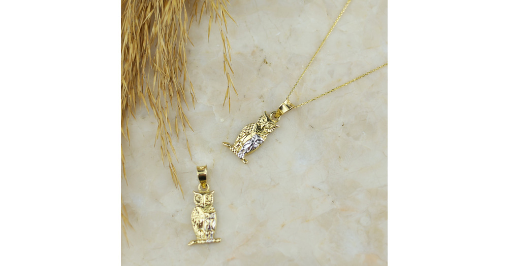 Handmade 14k Solid Gold Night Owl Necklace for Her , Minimalist Animal Yellow White Gold Owl Pendant