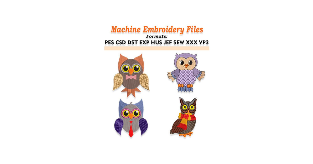 Bundle of Owls Embroidery design files. Sizes 2", 3", 4", 5", 6", 7",