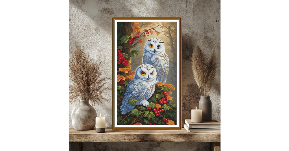 Snowy Owls Cross Stitch Kit, Counted Needlepoint, DIY Craft