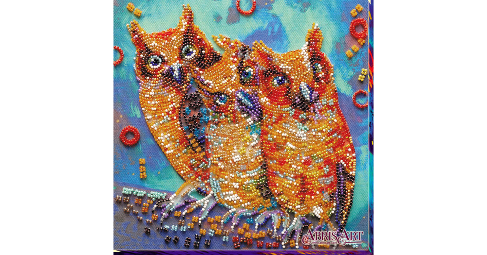 DIY Bead Embroidery Kit, Funny Owls Trio, Needlepoint kits, Forest Animals Home decor, Embroidery ar