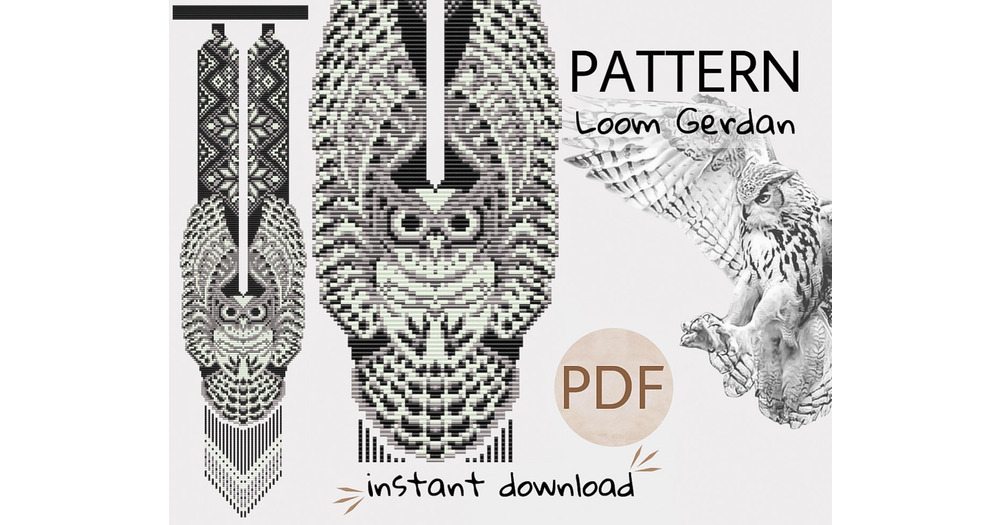 PDF winter ethnic owl Geometric Gerdan pattern, wild bird Seed Bead woven Necklace Pattern, Loom Jew