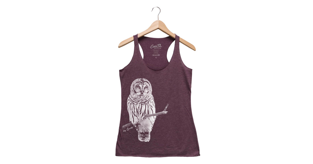 Hand Screen Printed Barred Owl Racerback Tank Top: Nature Shirt