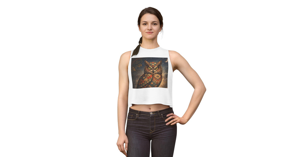 Decorative Patterned Owl crop top | Boho Night Owl, Crescent Moon