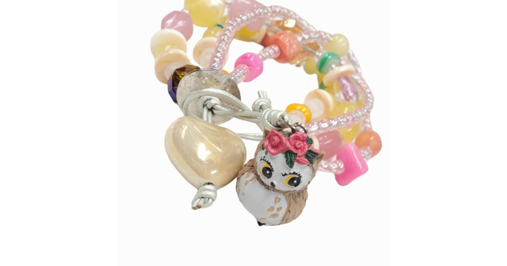 Owl Beaded Leather Wrap Bracelet: Multicolor Boho Jewelry