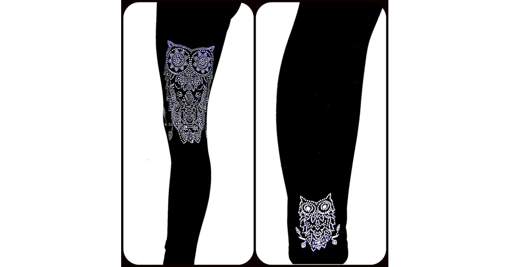 Regular Size Full Length Leggings Embellished Iridescent Rhinestone &  Crystal Owl Design