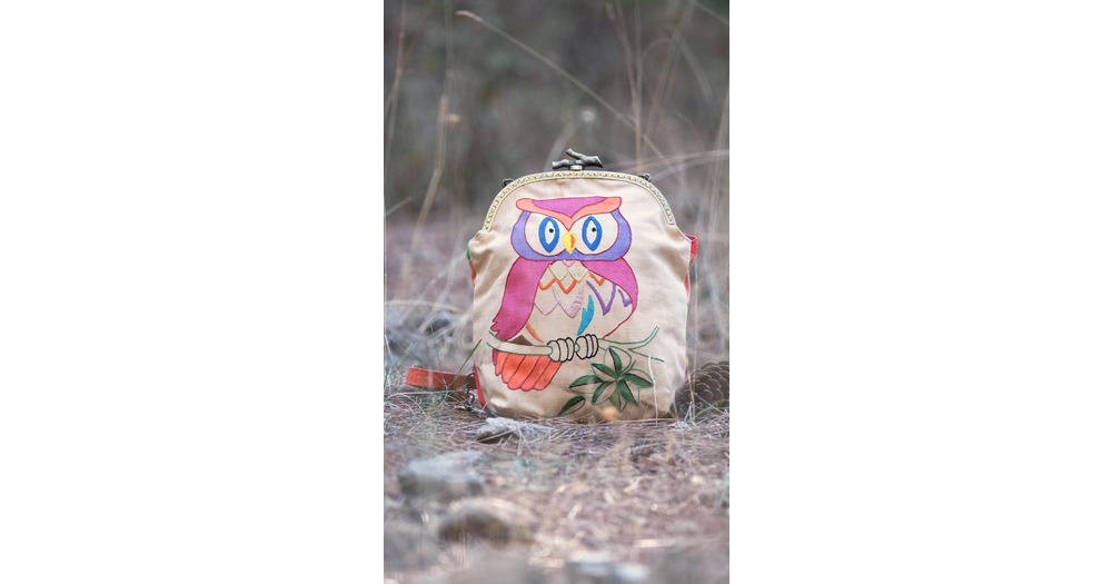 Happy Owl Bag Vintage Embroidery, Rainbow, Linen, Kiss-lock