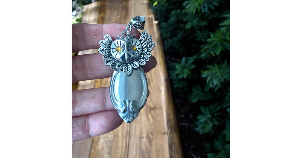 Handmade Silverware Owl Pendant Necklace: Swarovski Crystal Eyes