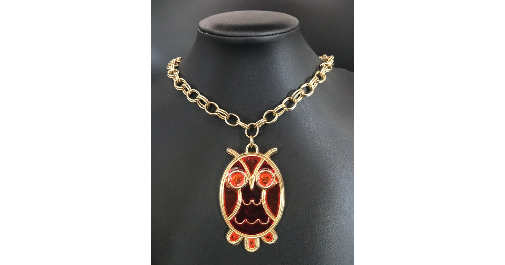 Vintage Gold Tone Chunky Chain Owl Pendant Necklace, 1970's 1980's Jewelry