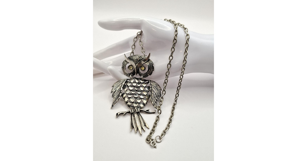 Vintage Silver Tone Long Chain Articulated Owl Pendant