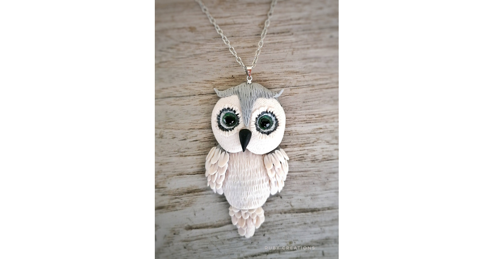 Handmade Polymer Clay Owl Necklace: Nature Inspired Pendant