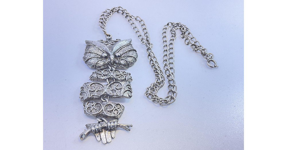 Vintage 24” Silver Toned Necklace With Owl Pendant Used