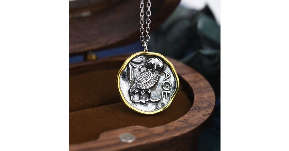 Sterling Silver Greek Coin Pendant Necklace - Owl Coin Necklace , Owl of Athena Coin Necklace in Ant