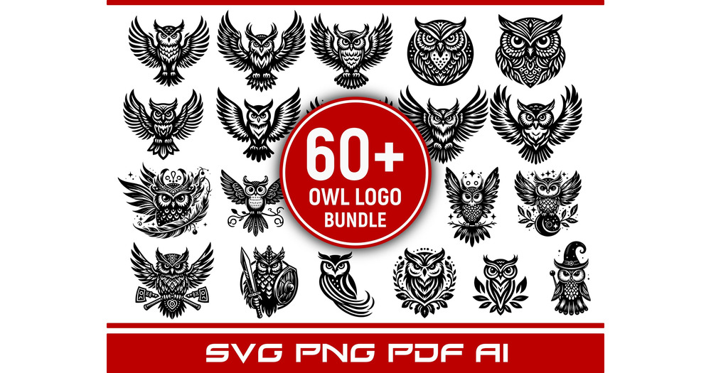 60+ Owl Logo Designs: Bird Clipart SVG PNG PDF Bundle
