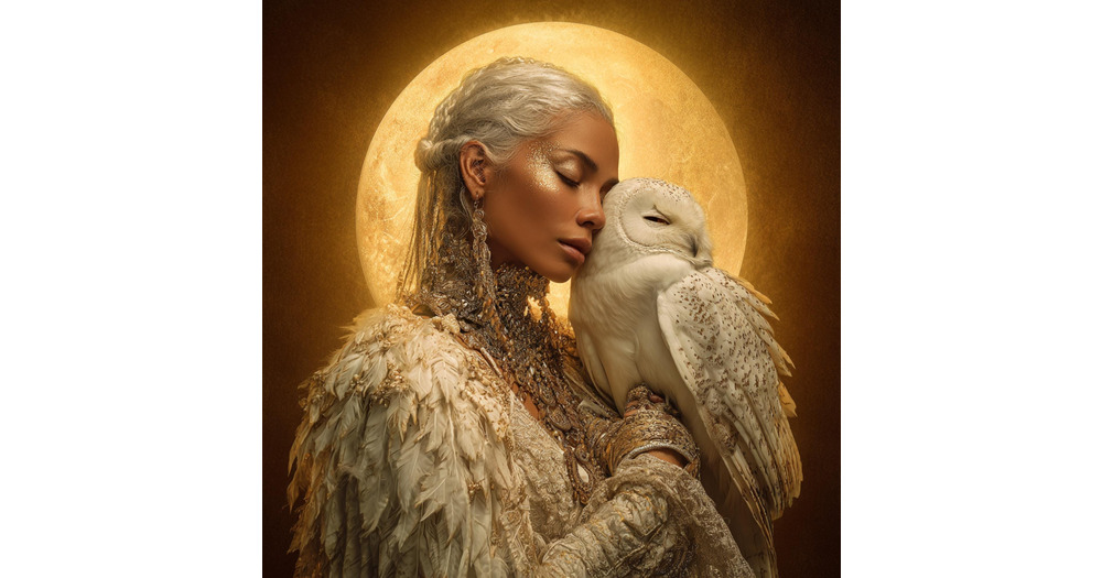 Mystic Woman with White Owl Art | Celestial AI Portrait (PNG)