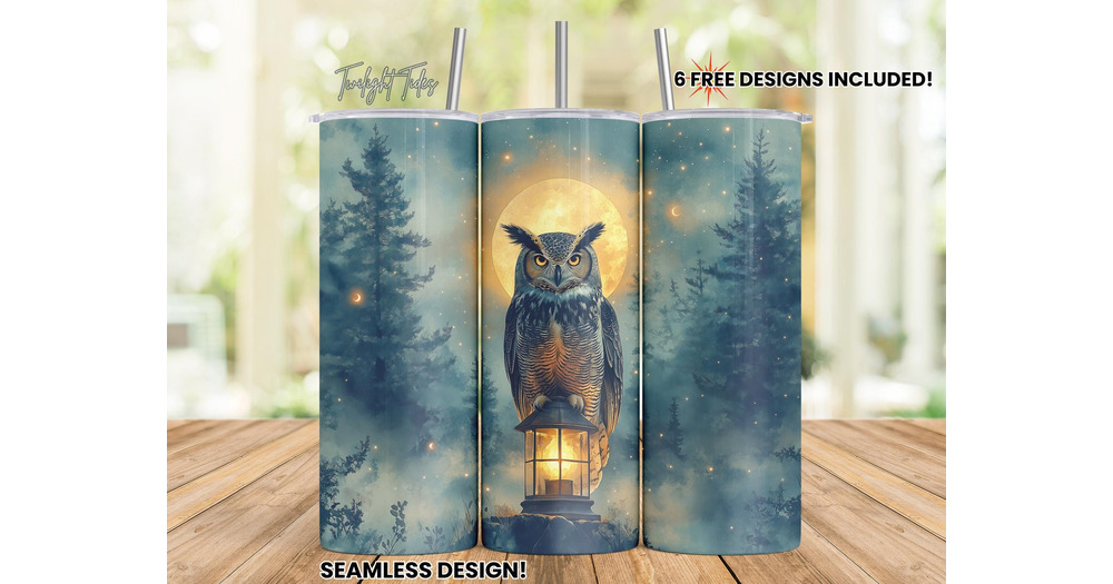 Wise Owl Magical Lantern 20 oz Skinny Tumbler Sublimation Design, Wizard Owl Digital Download PNG In