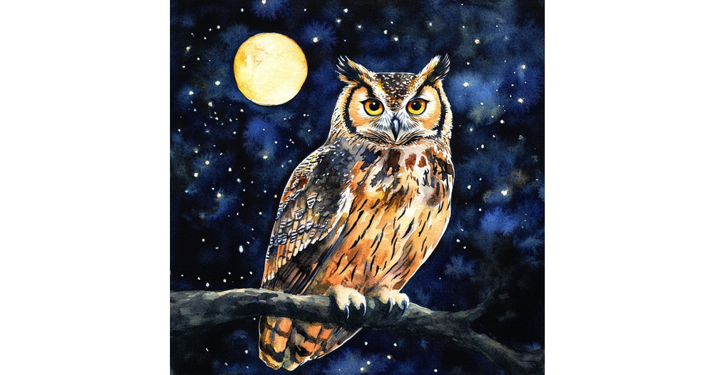 10 Printable Moonlight Owl Clipart, Night Owl realistic print, Owl in tree and moon, Owl and Moonlig