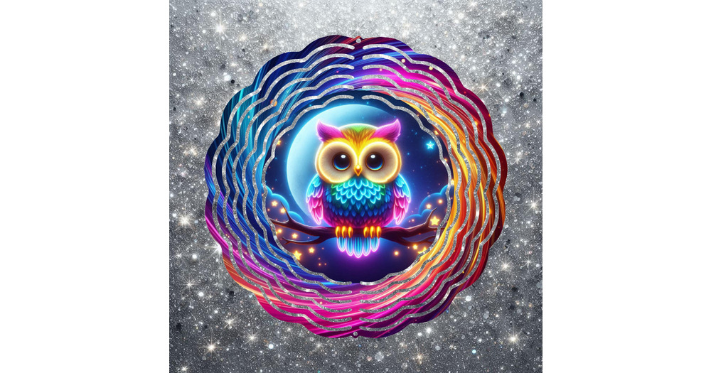 CUTE! Neon Owl Wind Spinner PNG for Sublimation * Digital Download