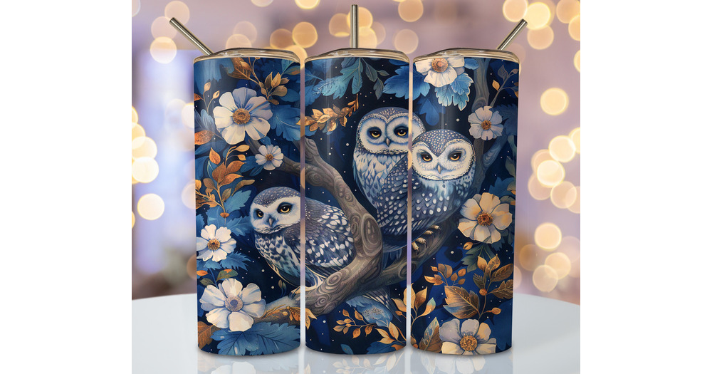 Floral Owl Tumbler Wrap, 20oz Skinny Sublimation Tumbler Design, Watercolor Owl Sublimation Design P