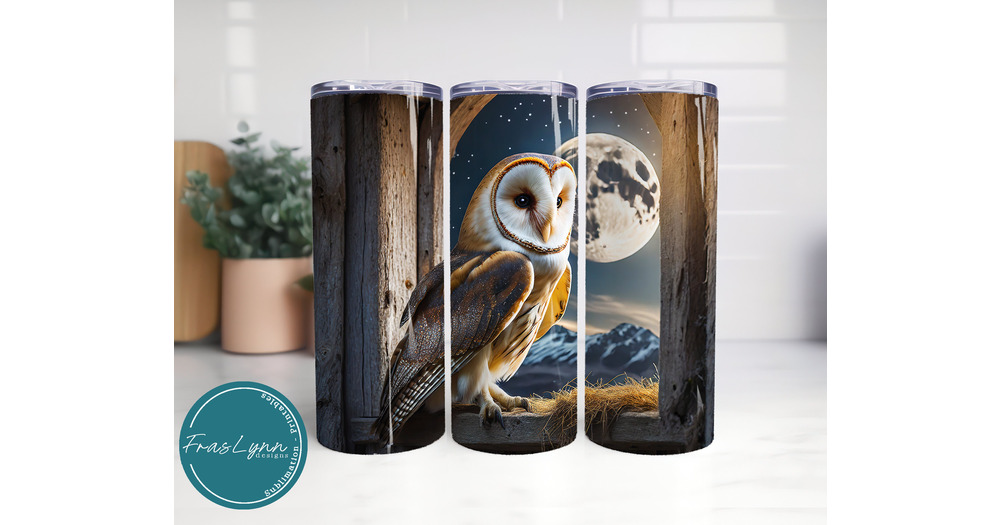Barn Owl Tumbler Wrap, 20oz Skinny Straight Tumbler, Digital Download, Stunning Full Moon Barn Owl S