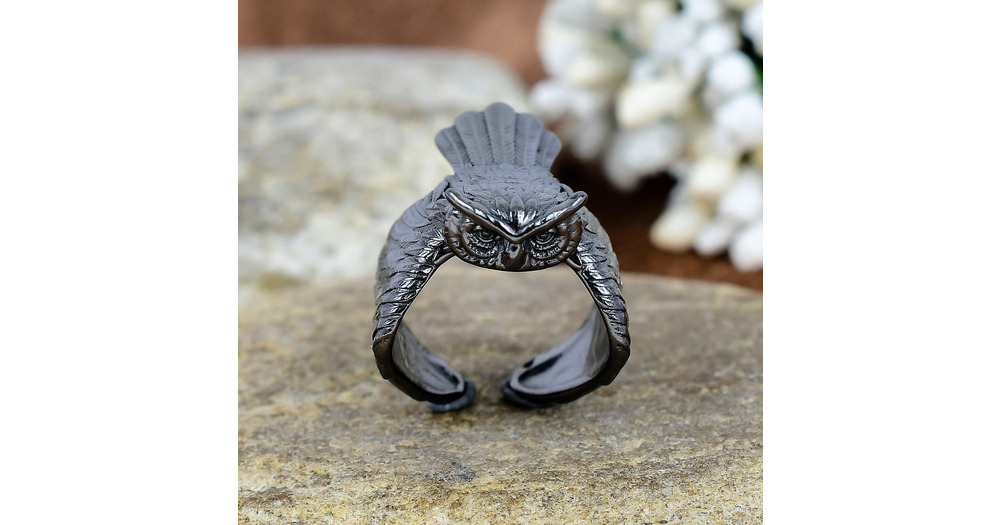 Oxidized Sterling Silver Owl Ring - Adjustable Bird Jewelry