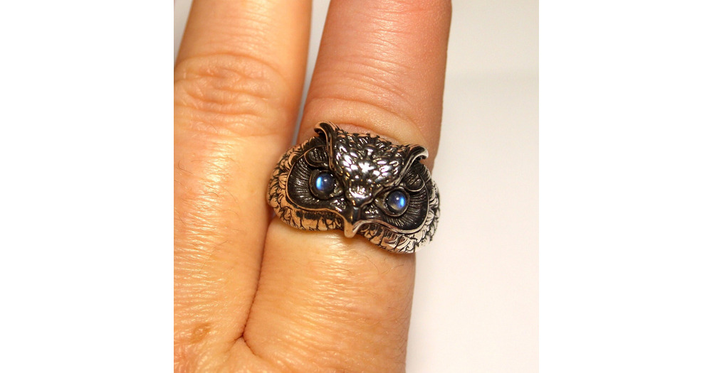 Blue Labradorite Owl Ring, Blue Flash Labradorite, Adjustable Size Gemstone Ring