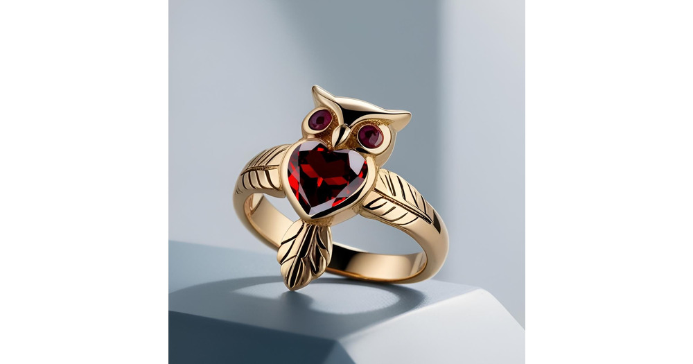 Heart Red Garnet Engagement Ring Unique Owl Design 925 Silver Yellow Gold Ring Bridal Promise Ring N