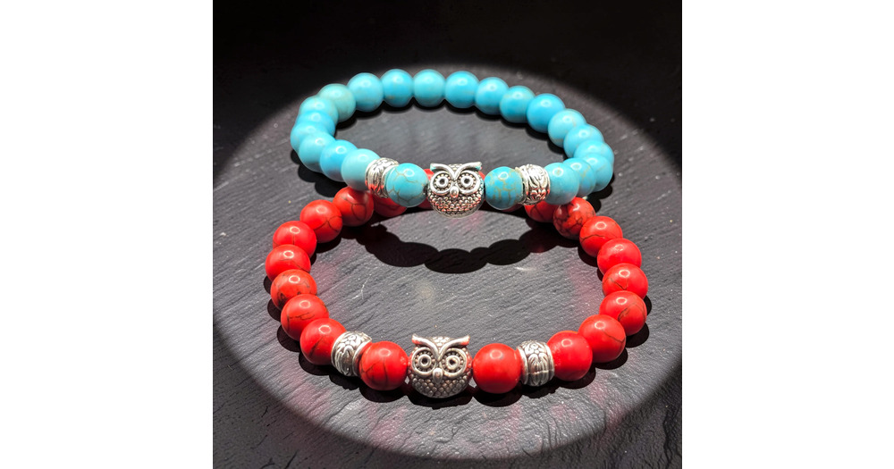 Handcrafted Owl & Marbled Stone Stretch Bracelet 6.5inch
