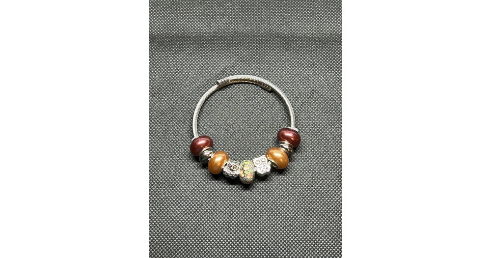 Brown & Beige Owl Beaded Cuff Adjustable Bracelet