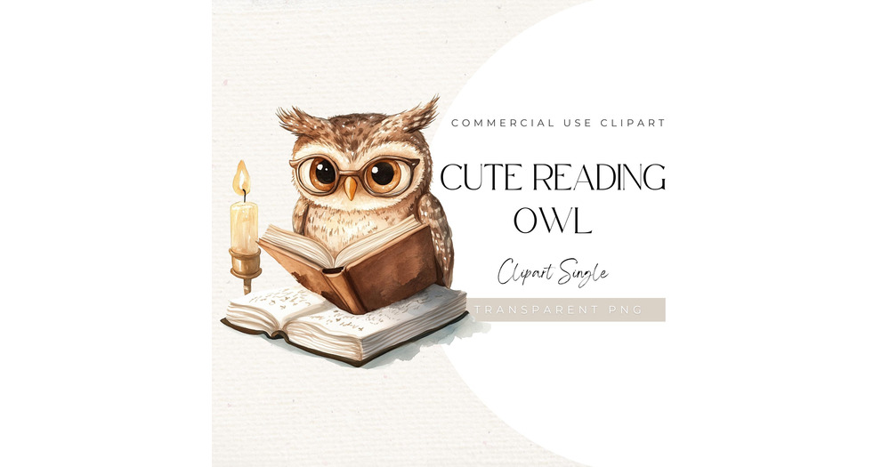 Watercolour Owl Reading Clipart – Cute Owl PNG with Candle & Glasses | Cozy Autumn Animal