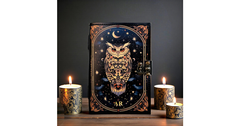 Personalized Owl Leather Journal, Fantasy Spellbook Diary, Dark Academia Book of Shadow, Handmade Wi