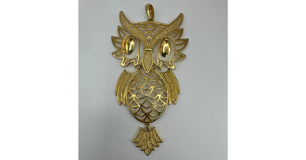 Vintage Articulated Owl Pendant Large Gold Tone 70's