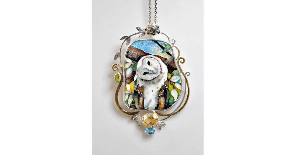 RESERVED Georgian Cloisonne Enamel Barn Owl Pendant – Sterling Silver, Citrine, Topaz, Peridot