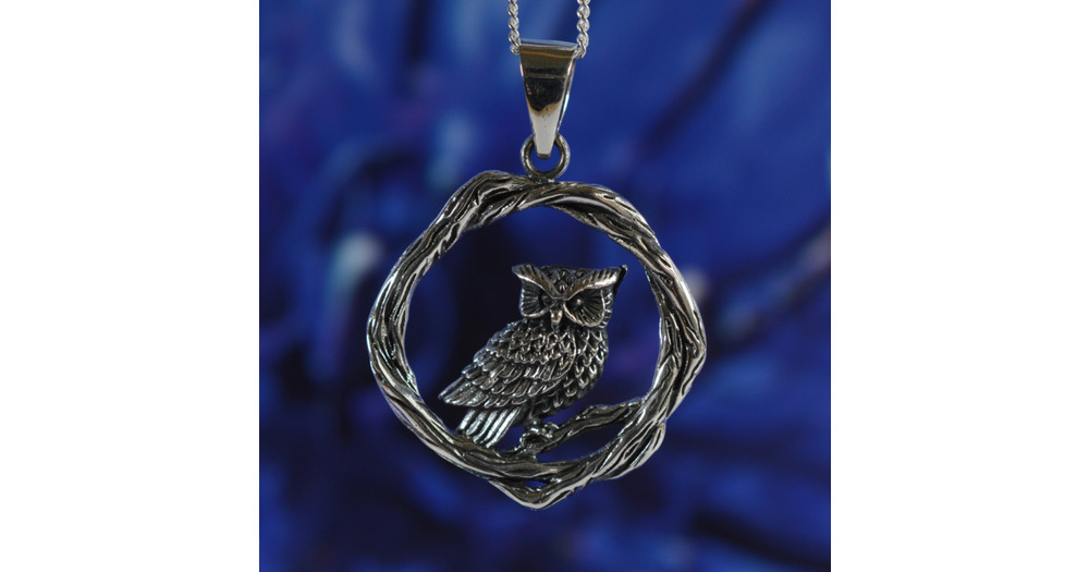 Sterling Silver 925 Perched Owl Pendant       ( Weighs  6.1  Grams )