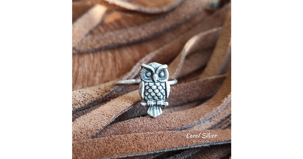 Adjustable Sterling Silver Owl Ring · Rustic Boho Jewelry