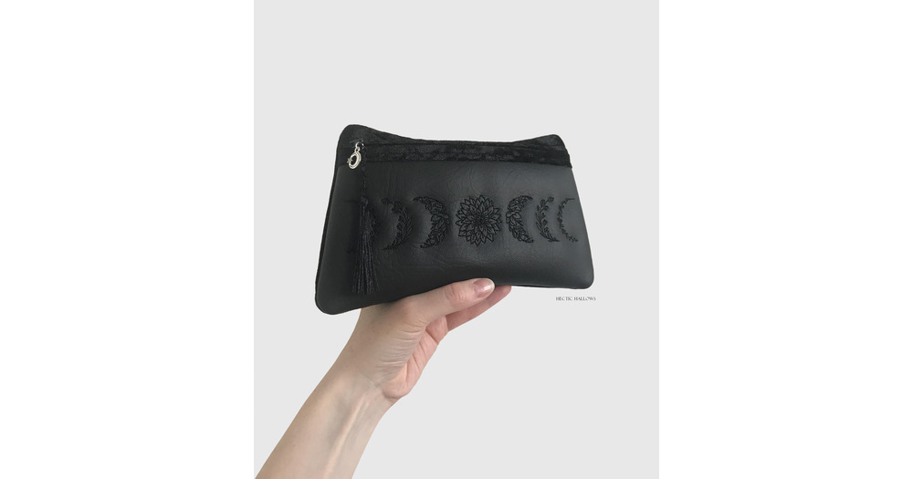 Black Celestial Phases Of The Moon, Floral Bag, Moon Purse, Moon Clutch Bag, Night Owl, Black Magic