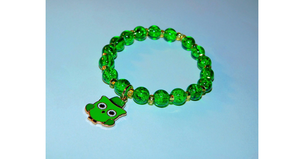 Green Crackled Glass Owl Charm Bracelet