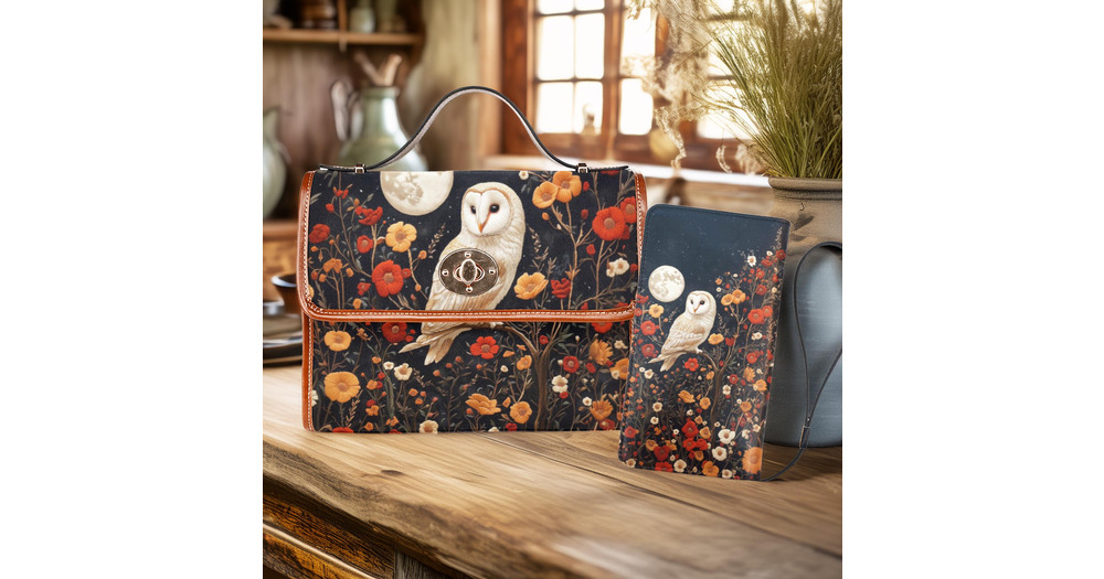 Dark Cottage Barn Owl and Dark Flowers Wallet and Bag Set, Dark Cottagecore Owl purse, Boho Owl Zip