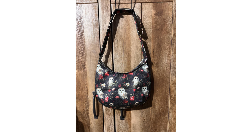 Woodland owl Canvas Crossbody Bag: Handmade Hobo Bag with Pockets