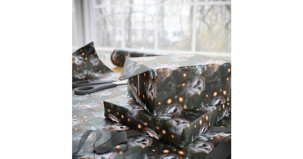 Owl Christmas Wrapping Paper | Festive Woodland Gift Wrap with Winter Foliage | Nature-Inspired Holi