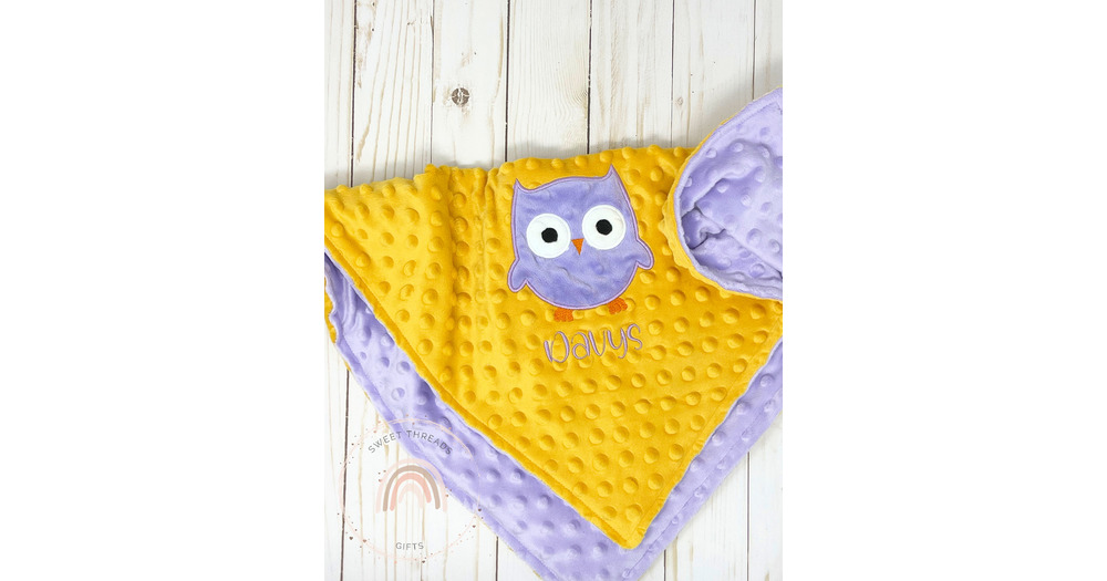 Owl Applique Minky Baby Blanket | Personalized Baby Shower Gift | Any Color Combination