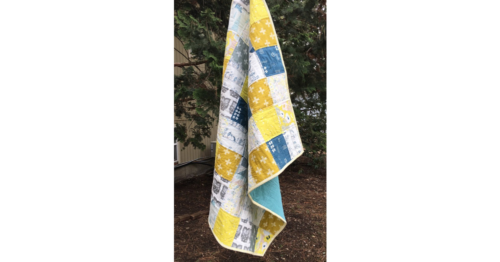 Handmade Patchwork Crib Quilt: Owl Art Gallery Fabric Baby Blanket