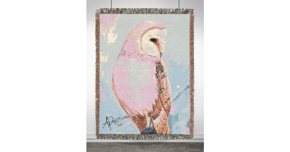 Barn Owl Woven Blanket "With Confidence" | Original Nature Illustration Print, Tapestry Th