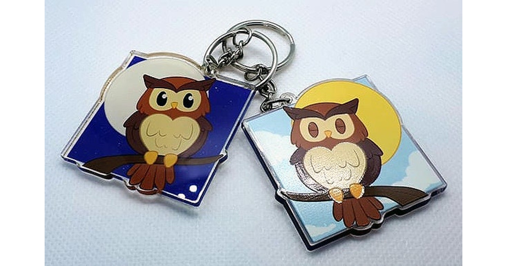 Sleeping and Awake Owl Acrylic Keychain Double-Sided 2 inches