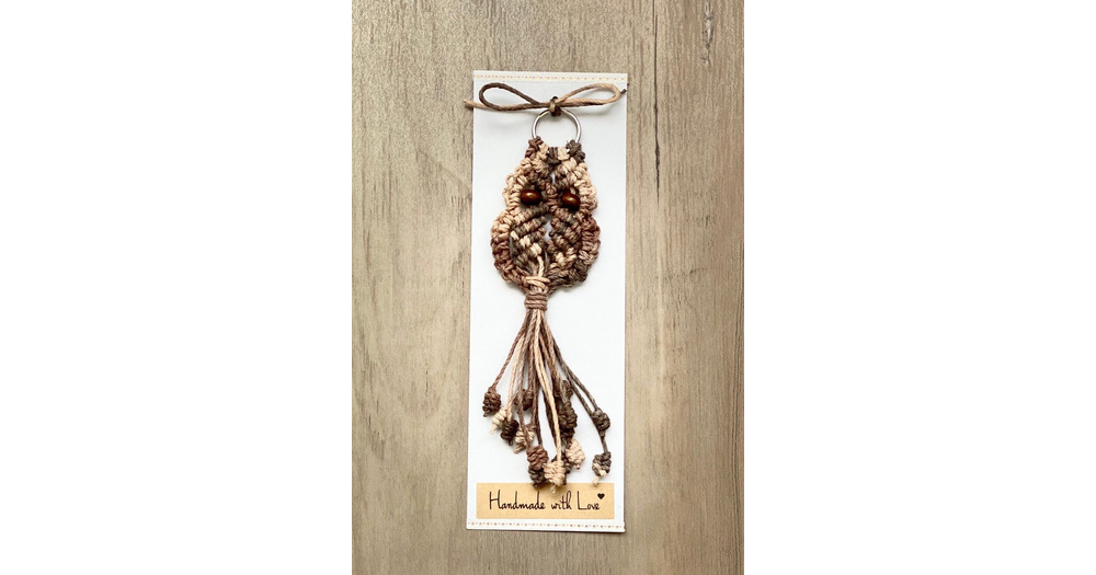 Owl Keychain, Purse Charm, Mini Macrame Owl, Hemp