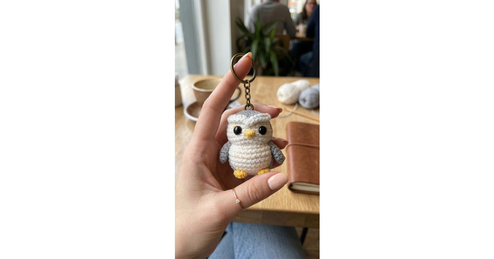 Crochet Owl Keychain, Amigurumi Bird Bag Charm, Cute Grey Snowy Owl Keyring, Backpack Accessory, Gif