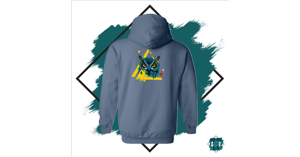 Blue Grunge Owl Hoodie, Edgy Streetwear Fashion