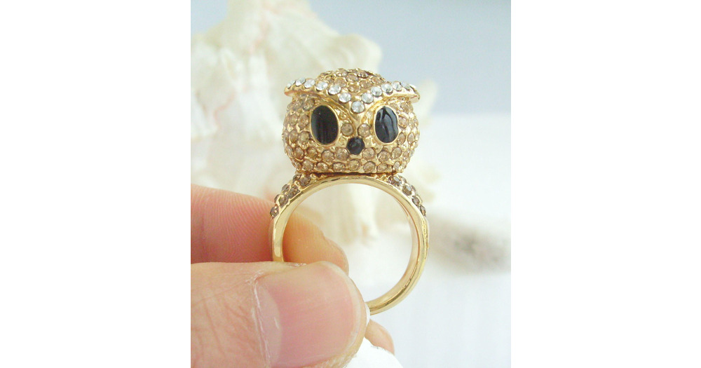 Rhinestone Owl Ring, Animal Statement Jewelry