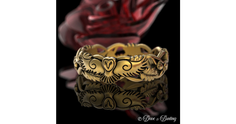 Gold/White Gold Owl Wedding Band, 10K Gold Acorn Forest Ring, 14K 18K Barn Owl, Oak Leaves Nature Ri