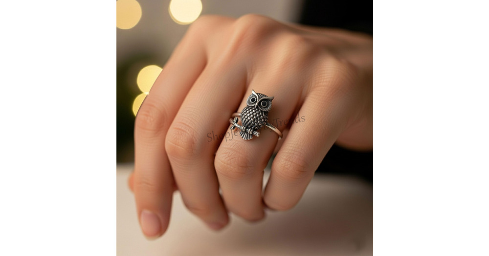 Oxidized Sterling Silver Owl Ring: Animal Lover Jewelry
